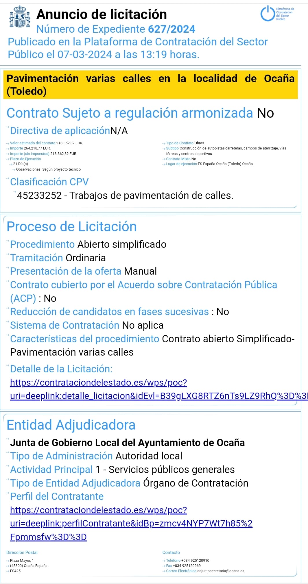 La Junta de Gobierno Local del Ayuntamiento ha aprobado el Proyecto de Pavimentación de Varias Calles dentro del Plan Provincial 2024. Se pavimentará las siguientes