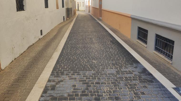 Inversión: 99.834,98 € (impuestos incluidos). Se ha construido un pavimento de plataforma única de adoquín donde los espacios destinados a los peatones se sitúan al
