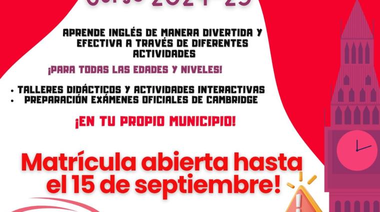 Aprende inglés de manera divertida y efectiva a través de diferentes actividades, para todas las edades y niveles. Matrícula abierta hasta el 15 de septiembre.