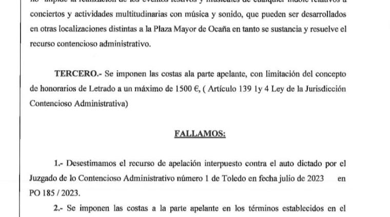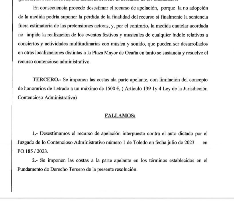 El Tribunal Superior de Justicia de Castilla la Mancha ha desestimado el Recurso de Apelación presentado por el Ayuntamiento de Ocaña contra el auto de