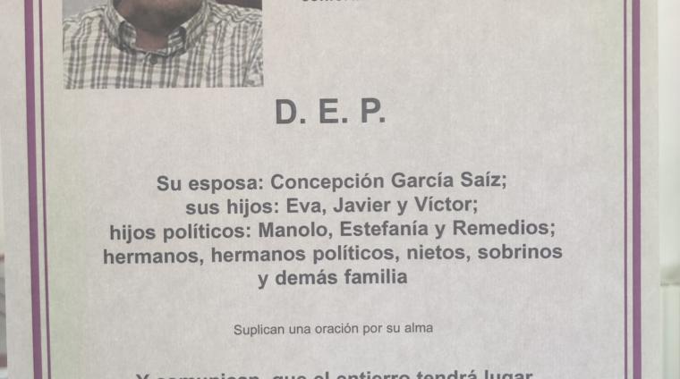 El funeral se celebrará el 20 de septiembre a las 20.30 h. en la Iglesia de San Juan Bautista siendo aplicado por su eterno descanso.