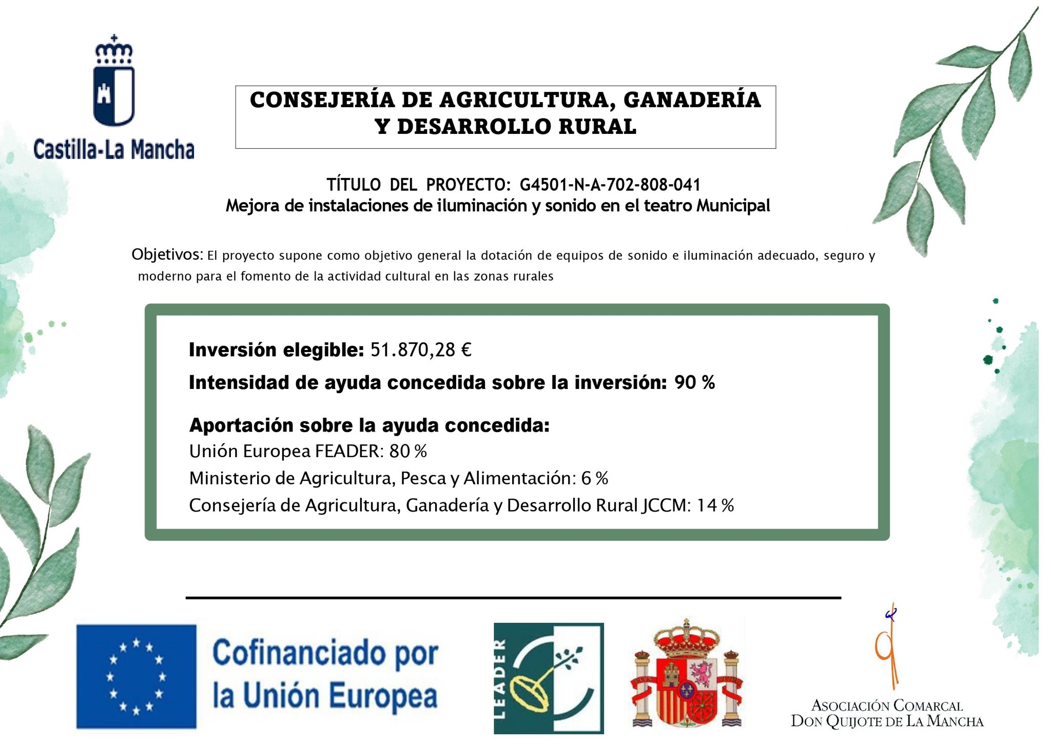 El proyecto supone como objetivo general la dotación de equipos de sonido e iluminación adecuado, seguro y moderno para el fomento de la actividad cultural