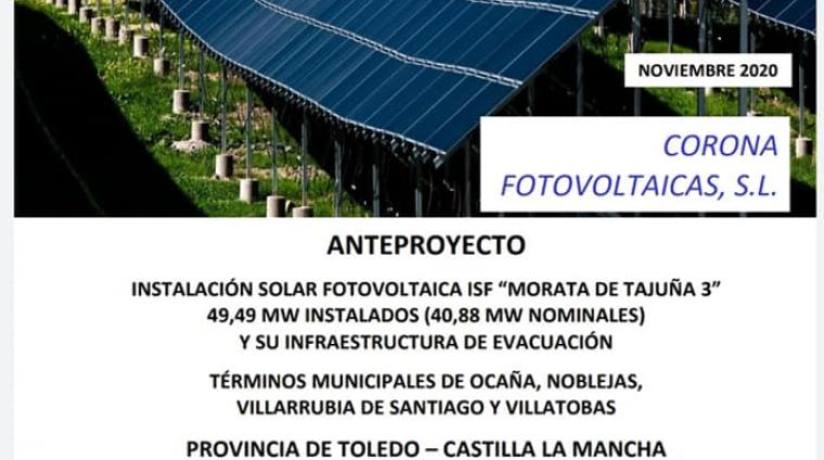 Según comunicación del Area de Industria y Energía de la Subdelegación del Gobierno, la empresa Corona Fotovoltaicas S.L ha solicitado la tramitación de la Autorización