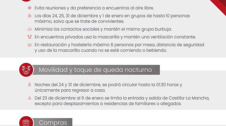 Puedes consultar todas las medidas establecidas en la Comunidad Autónoma de Castilla La Mancha a través del siguiente enlace: https://castillalamancha.es/actualidad/notasdeprensa/castilla-la-mancha-presenta-las-medidas-que-regular%C3%A1n-las-navidades?fbclid=IwAR2p_F3fNPUin03SktAq_dh90Hw9V8Y2FViFJ1i0lJfQDp_M1rtssXVZc24