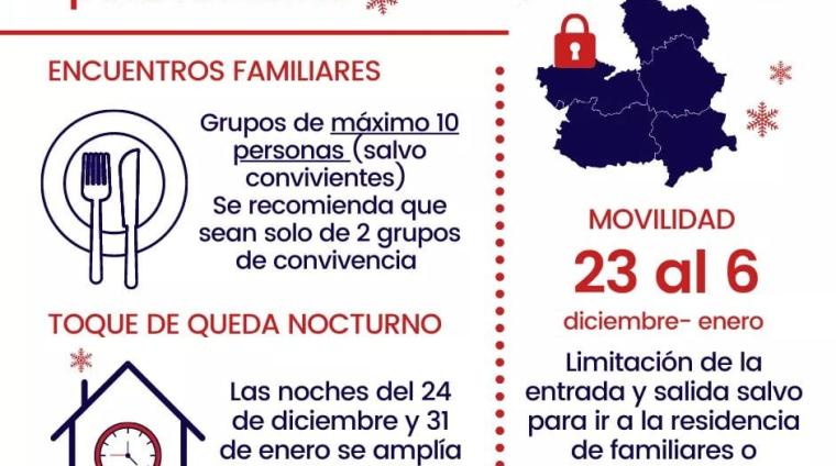 Estas son algunas de las medidas que estarán en vigor durante las fiestas de Navidad: Los encuentros familiares pueden ser de máximo 10 personas (salvo