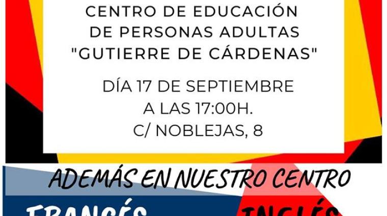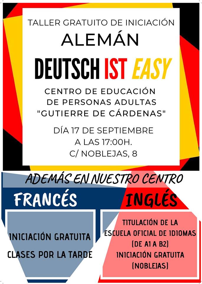 TALLER GRATUITO DE INICIACIÓN AL ALEMÁN DEUTSCH IST EASY Centro de Educación de personas adultas " Gutierre de Cárdenas" DÍA 17 de Septiembre HORA 17:00H