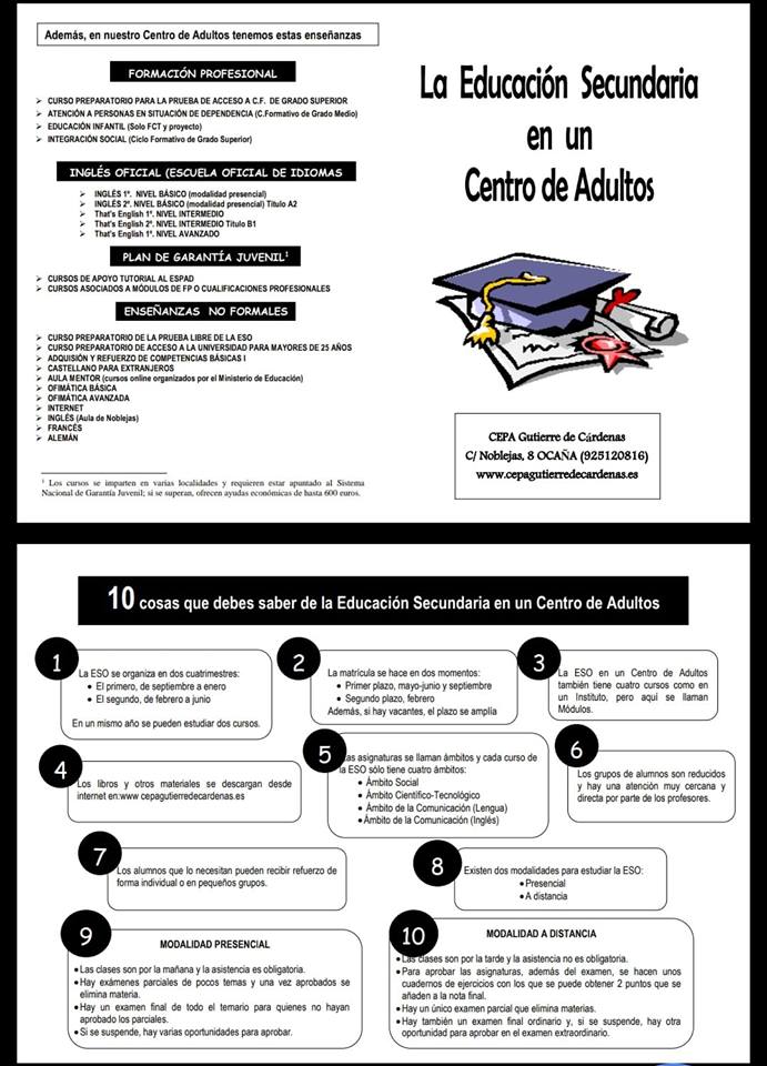 PLAZO EXTRAORDINARIO DE MATRÍCULA ABIERTO en las enseñanzas de secundaria de adultos y que, aunque oficialmente termina "el día 7", mientras haya plazas (que es